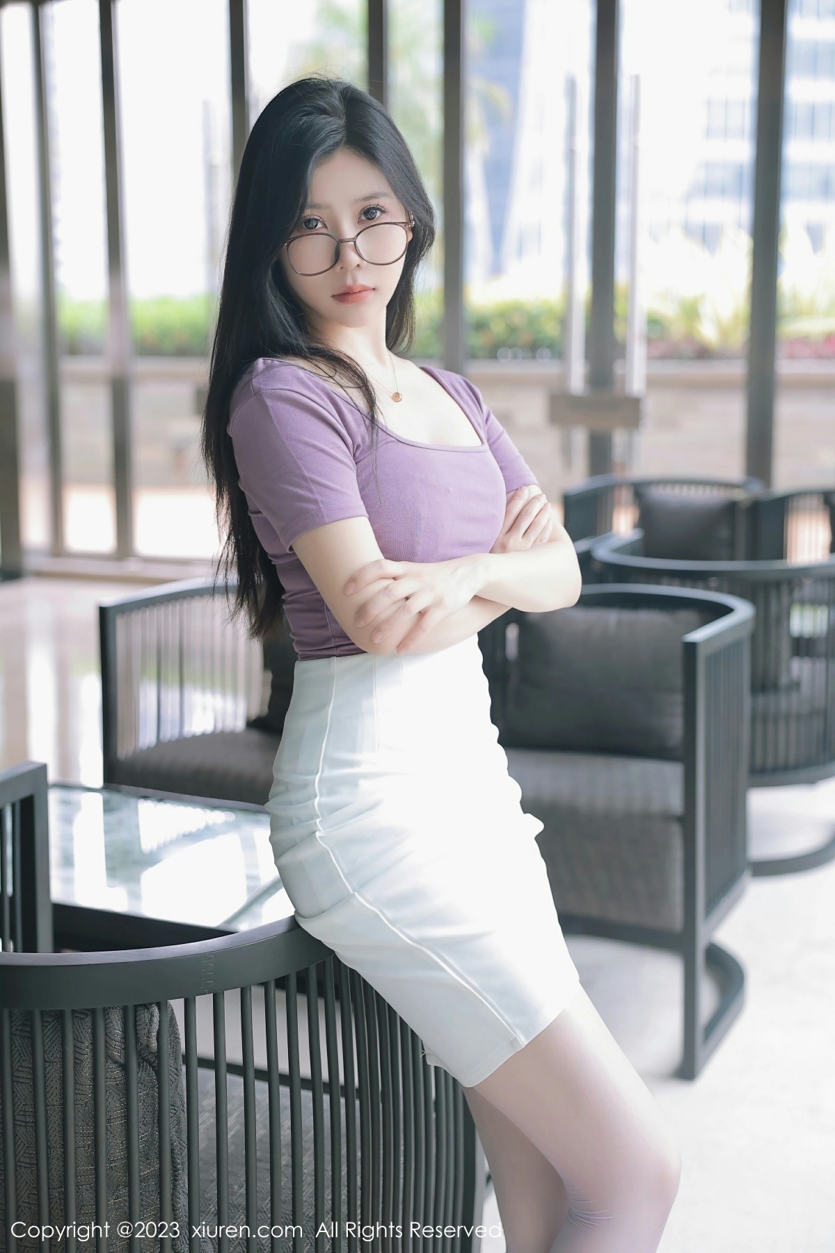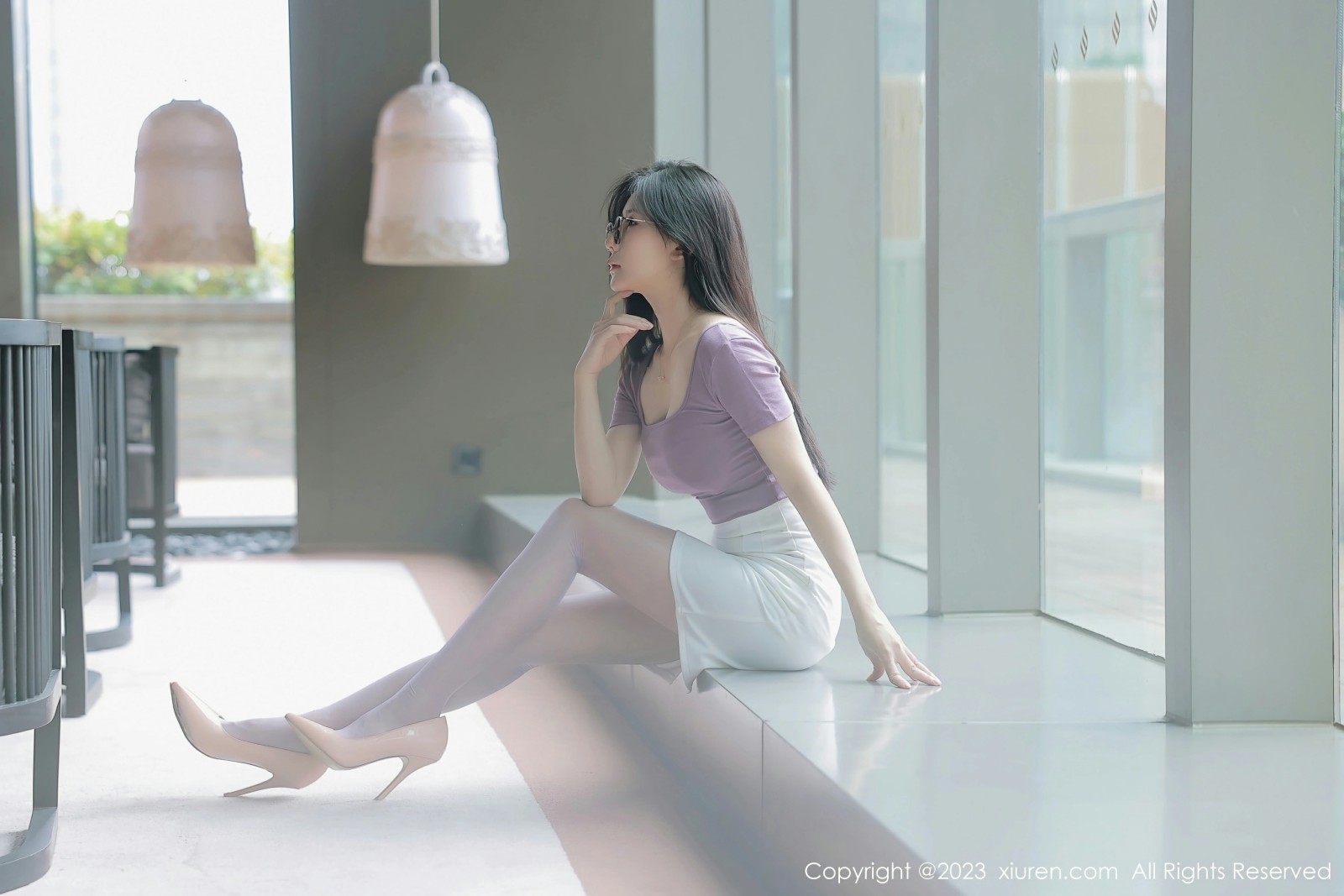 模特@尹甜甜 泰国旅拍写真发布,性感紫灰色上衣搭配性感白色短裙,性感淡红色蕾丝内衣搭配性感诱人紫色丝袜,洁白的肤色灼灼其华,性感身材一览无余!全套写真共66p,希望大家喜欢和多多支持。